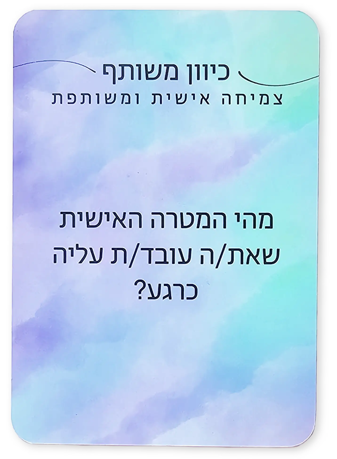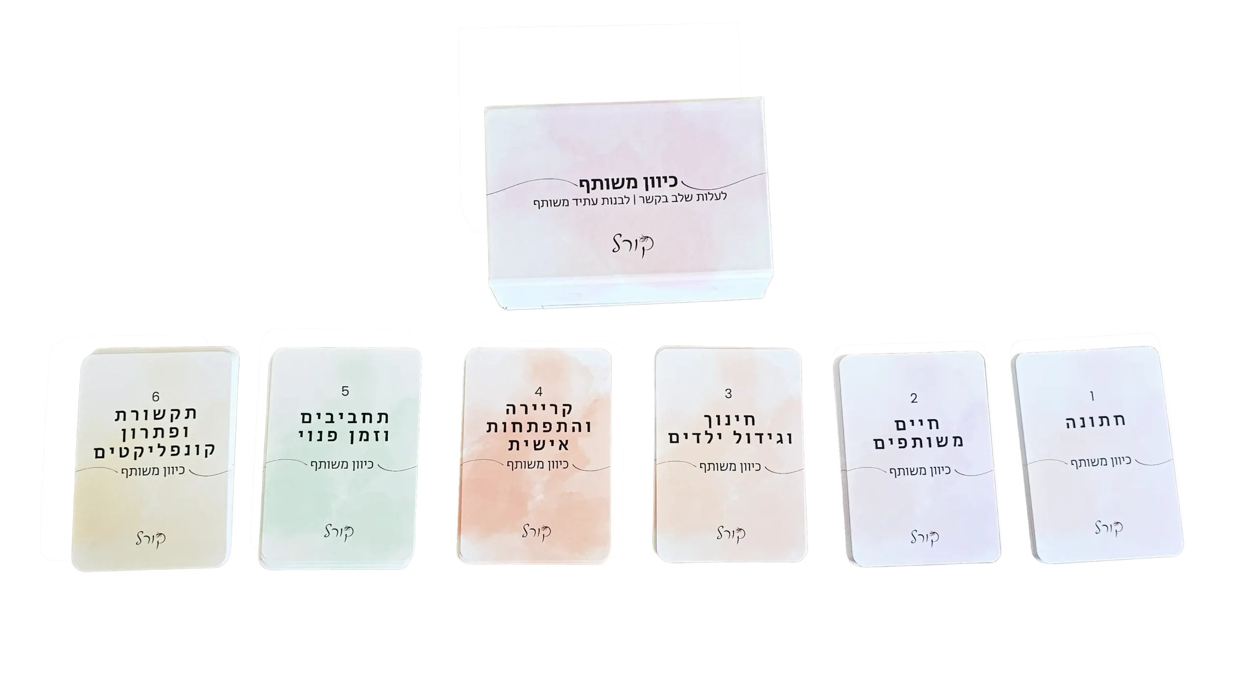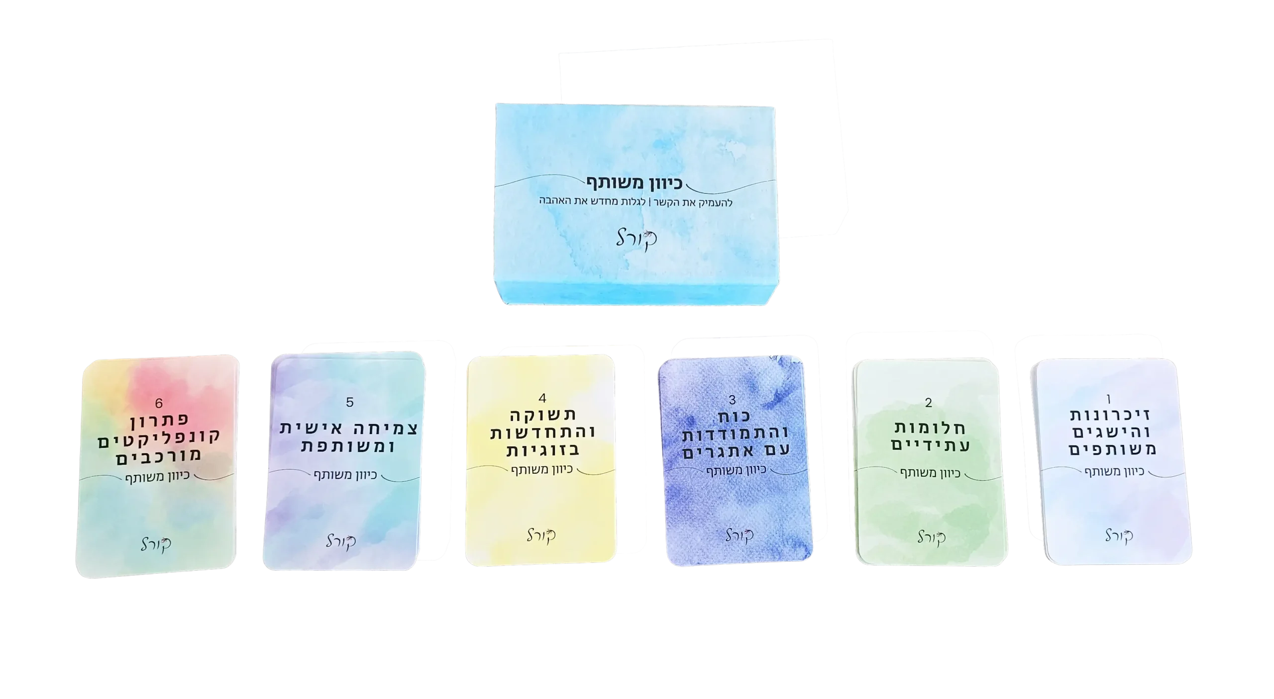 כיוון משותף הוא משחק קלפים שנועד לאפשר לזוגות להתקרב, לשוחח בפתיחות ולהעמיק את הקשר באווירה קלילה.