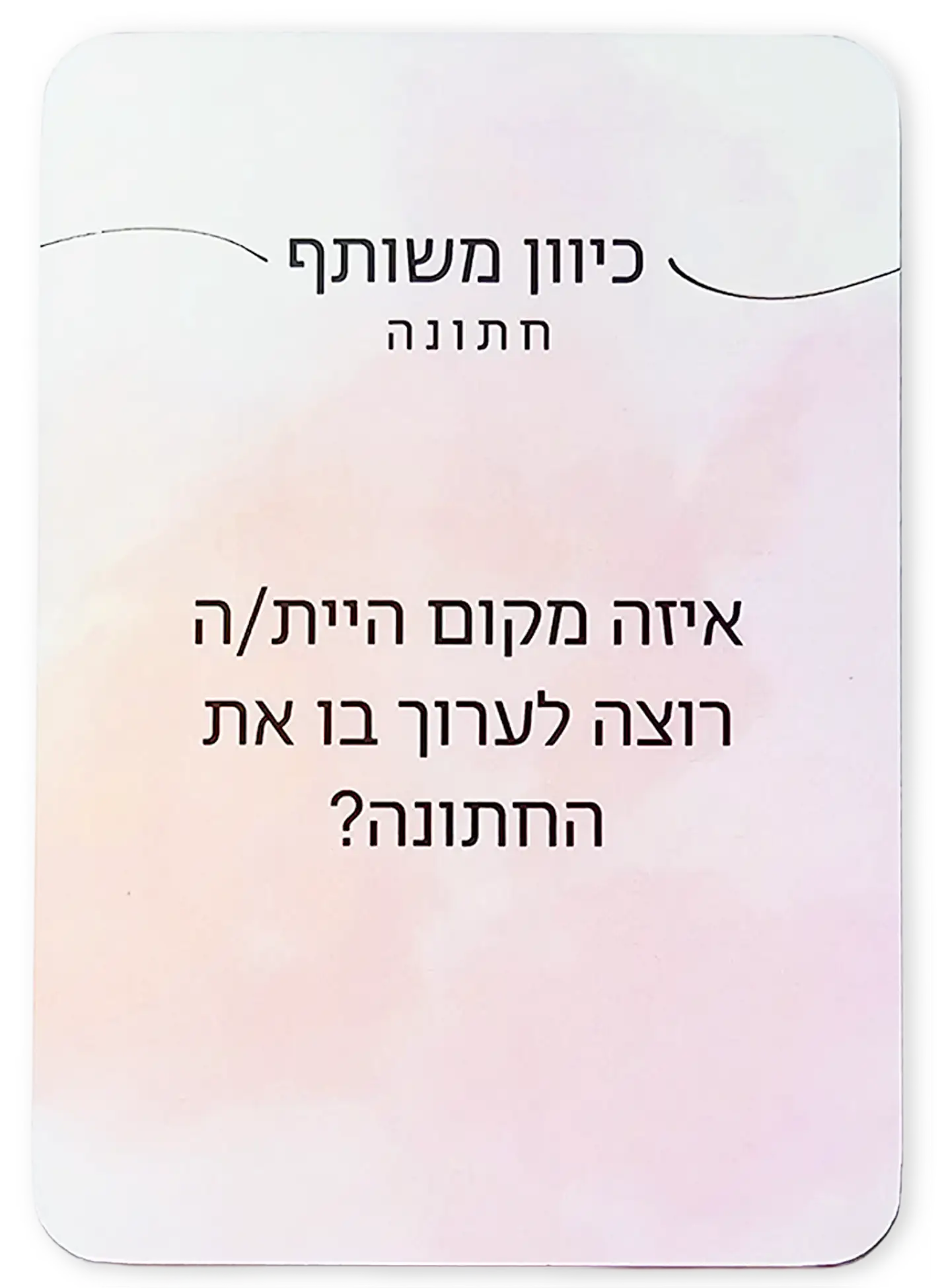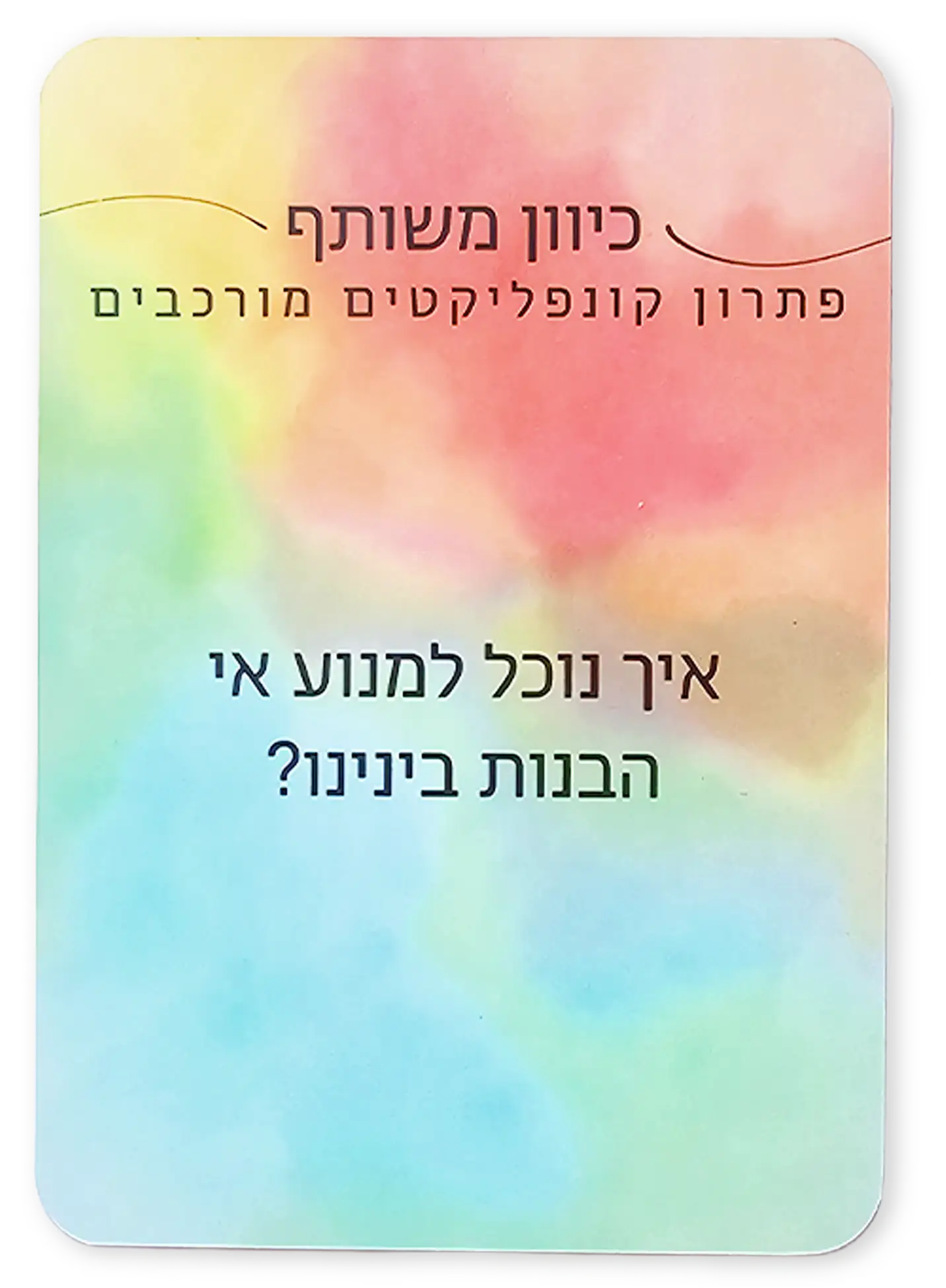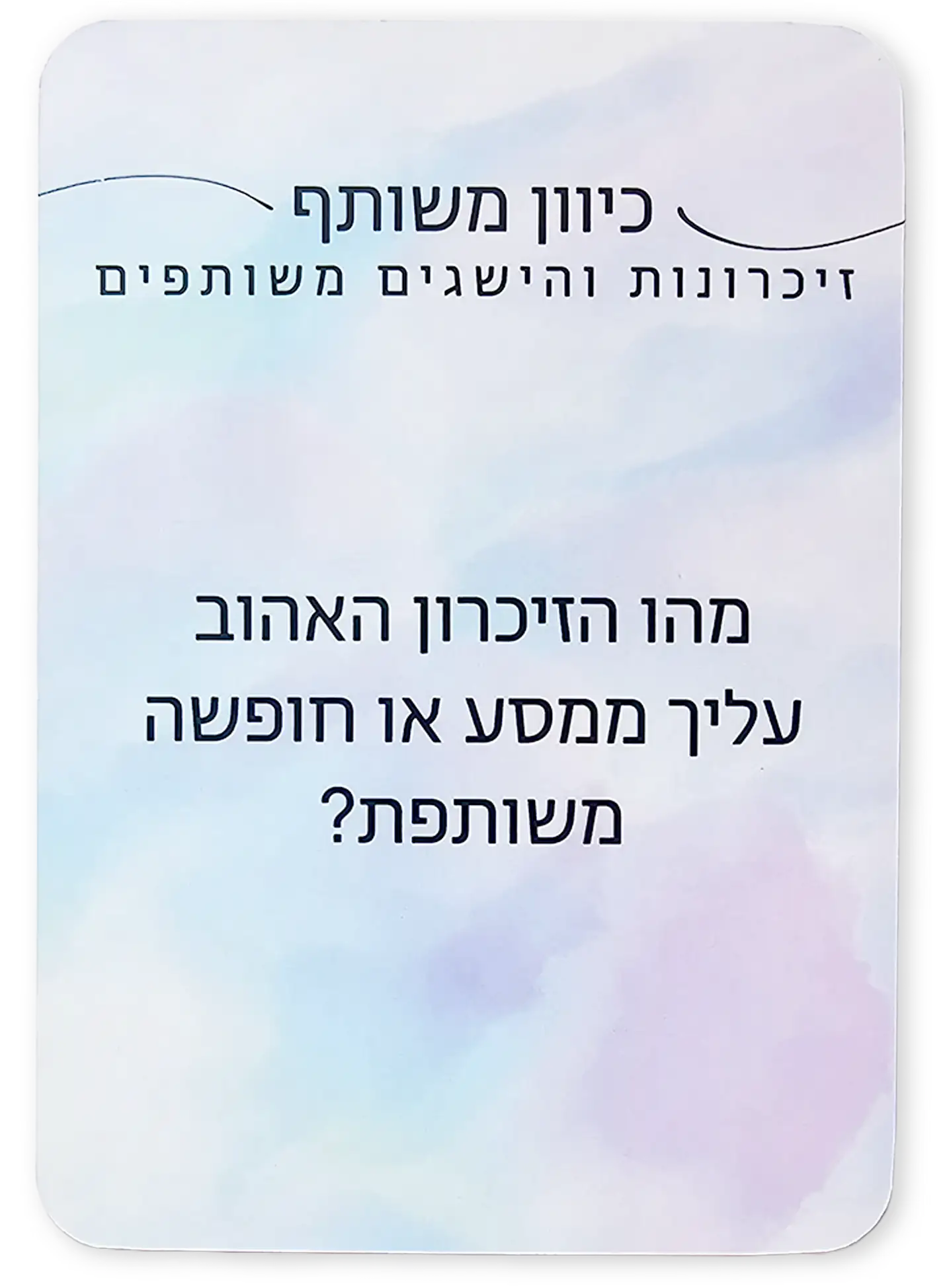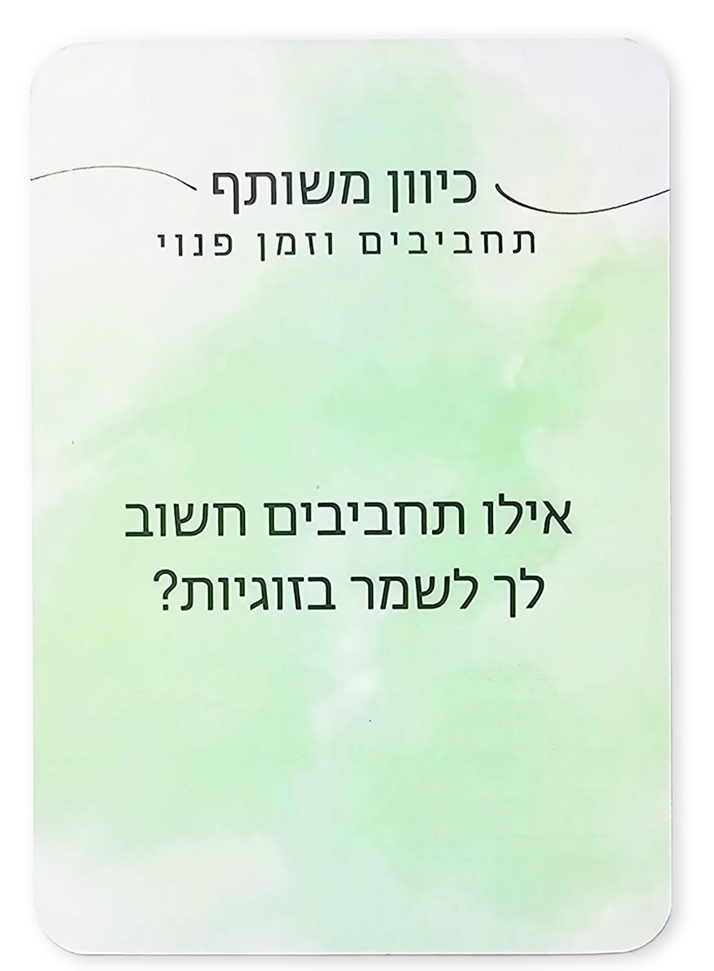 כיוון משותף הוא משחק קלפים שנועד לאפשר לזוגות להתקרב, לשוחח בפתיחות ולהעמיק את הקשר באווירה קלילה.