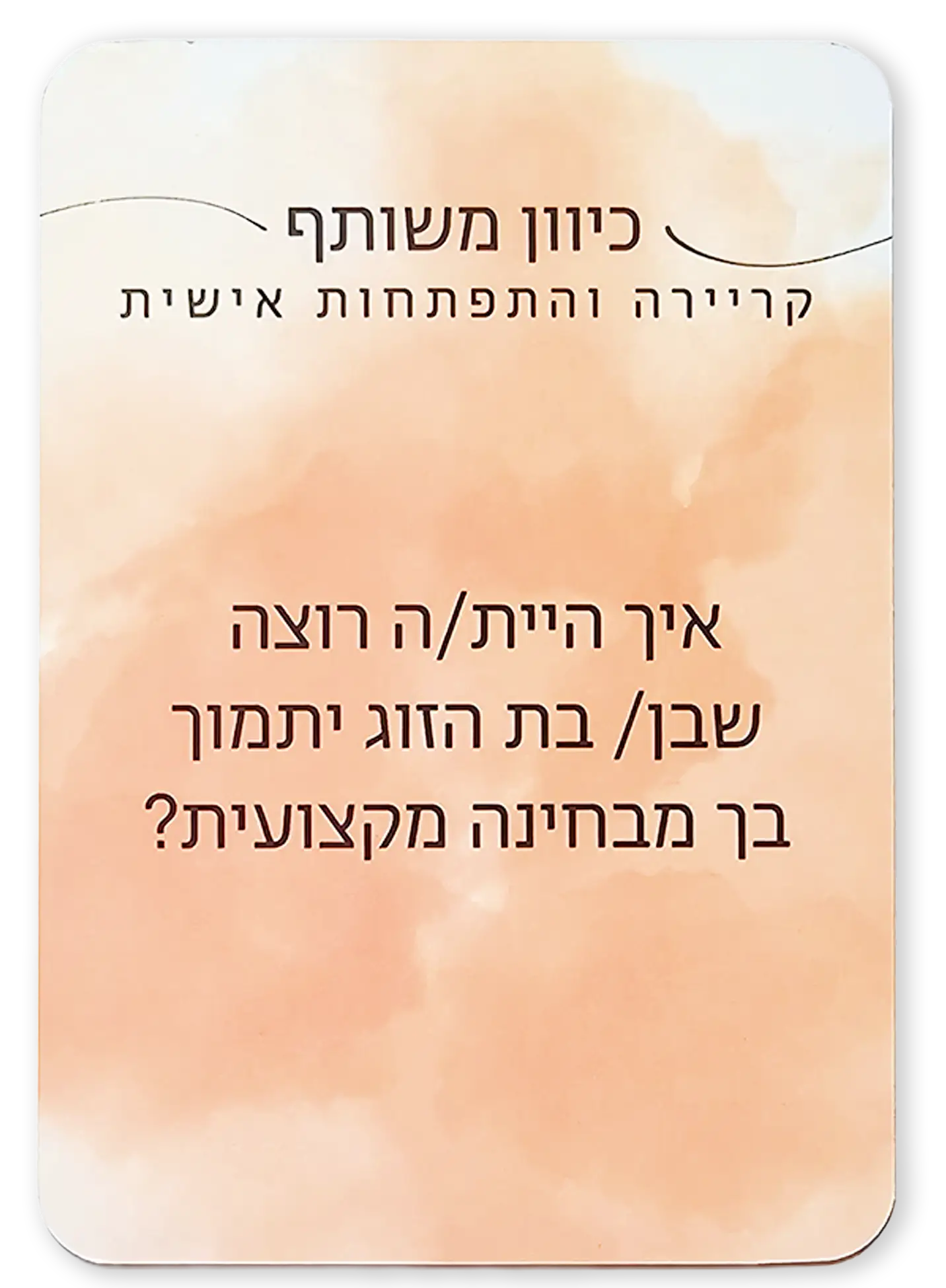 המשחק פותח את הדלת לשיחות אמיתיות. במקום לחשוב "איך להתחיל" או לפחד שזה ייגמר בריב, פשוט שולפים קלף והשיחה כבר זורמת מעצמה.